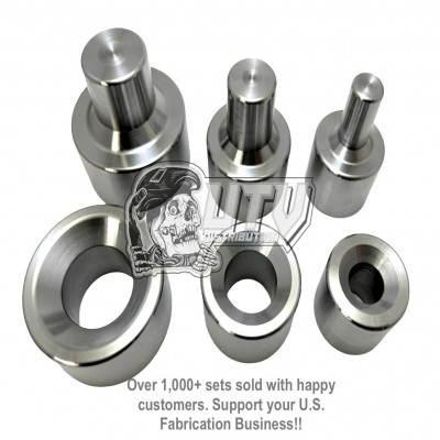 More Details: Made for use with a hydraulic press or arbor press. There are no holes in the middle of these dies. Holes must be drilled before you dimple the materials.(These do not act as punches) We recommend no thicker than 1/8" material. Customers have done thicker-thats your final call. We recommend lubricants when using the dies. This will reduce die wear and gulling.