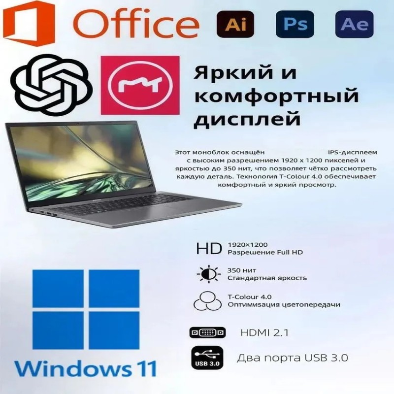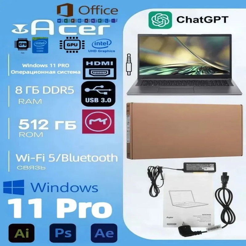 Ноутбук Acer Aspire 3 – это идеальное решение для тех, кто ищет надежный и производительный ноутбук. Он оснащен мощным процессором Intel Core i5 и 8 ГБ оперативной памяти, что делает его идеальным выбором для многозадачных задач, ресурсоемких приложений и быстрого веб-серфинга. С этим ноутбуком вы легко справитесь с любыми заданиями, будь то работа, обучение или развлечения.