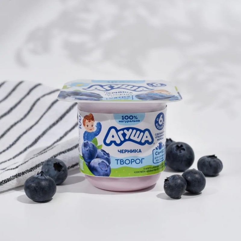 "Детский творог Агуша разработан как первый кисломолочный прикорм с 6 месяцев; оптимальным считается введение творога после овощей, безмолочных каш, фруктов. Творожок «Агуша» - это ценный источник полноценного молочного белка, легкоусвояемого кальция и витамина К2, которые так нужны, чтобы у малыша сформировались крепкие зубы и косточки. Помимо творога «Агуша» предлагает кефир, ряженку, йогурт – это тоже важная часть рациона подрастающего малыша. • 100% натурально • Без добавления консервантов, сухого молока, искусственных ароматизаторов • К2+Ca для крепких косточек и здорового роста"