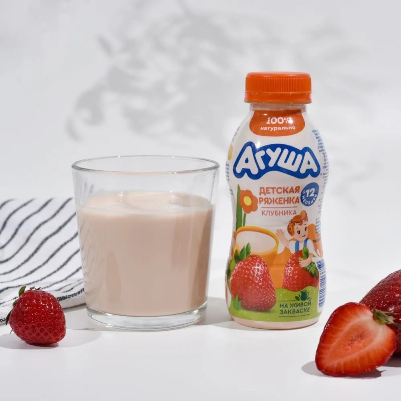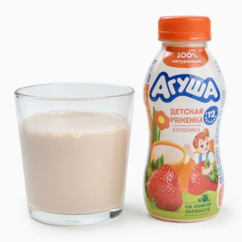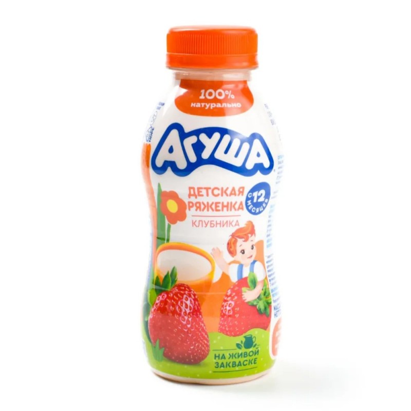 Детская ряженка Агуша Клубника для детей от 12 месяцев поможет сделать рацион малыша разнообразным и вкусным: она производится из нормализованного топленого молока, живой кисломолочной закваски и фруктового клубничного наполнителя. Приятный мягкий вкус должен понравиться даже самым взыскательным маленьким потребителям. Помимо ряженки «Агуша» предлагает творог, кефир, йогурт – это тоже важная часть рациона подрастающего малыша. • Разработана специально для детей - на отборном топленом молочке и живой закваске • 100% натуральная • Без сухого молока и заменителей молочного жира • Без добавления консервантов, искусственных ароматизаторов, красителей • Содержит кальций для здорового роста малыша