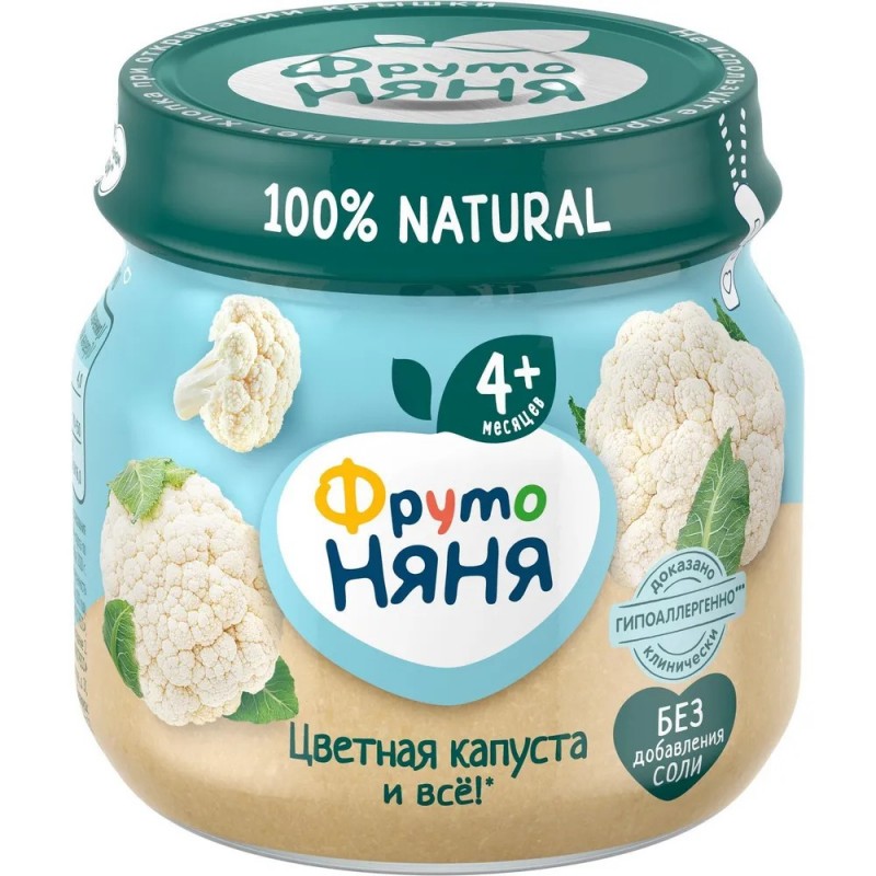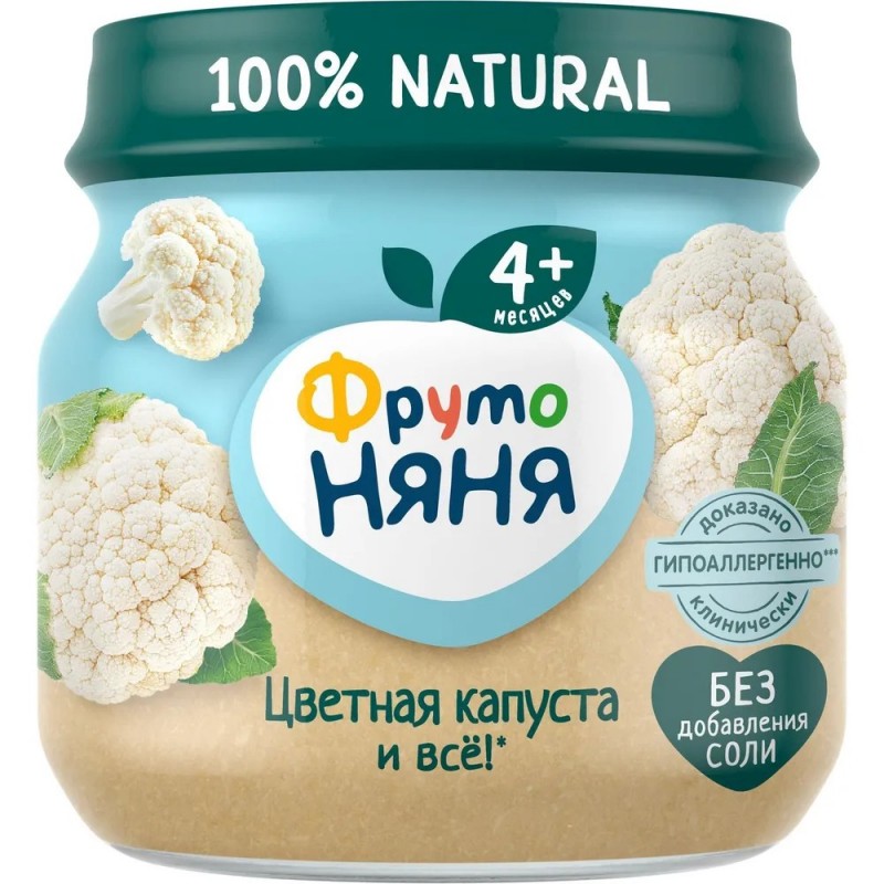 Гипоаллергенность доказана клиническими исследованиями идеально подходит для первого прикорма в составе только овощи и вода без консервантов, красителей, ароматизаторов, крахмала, соли Предупреждение Рекомендуется детям с 6 месяцев, начиная с 1/2 чайной ложки 2 раза в день, увеличивая постепенно к 12 месяцам до 100 г в день. Не разогревать в микроволновой печи. Не оставляйте детей без присмотра во время использования. Условия хранения При температуре от +1`С до +25`С, после вскрытия хранить в холодильнике в течение 24 часов Состав Цветная капуста, вода питьевая.