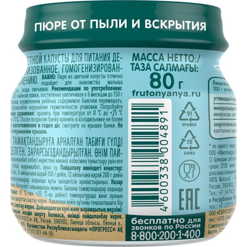 Пюре овощное ФрутоНяня с 4 месяцев, цветная капуста, 80 г
