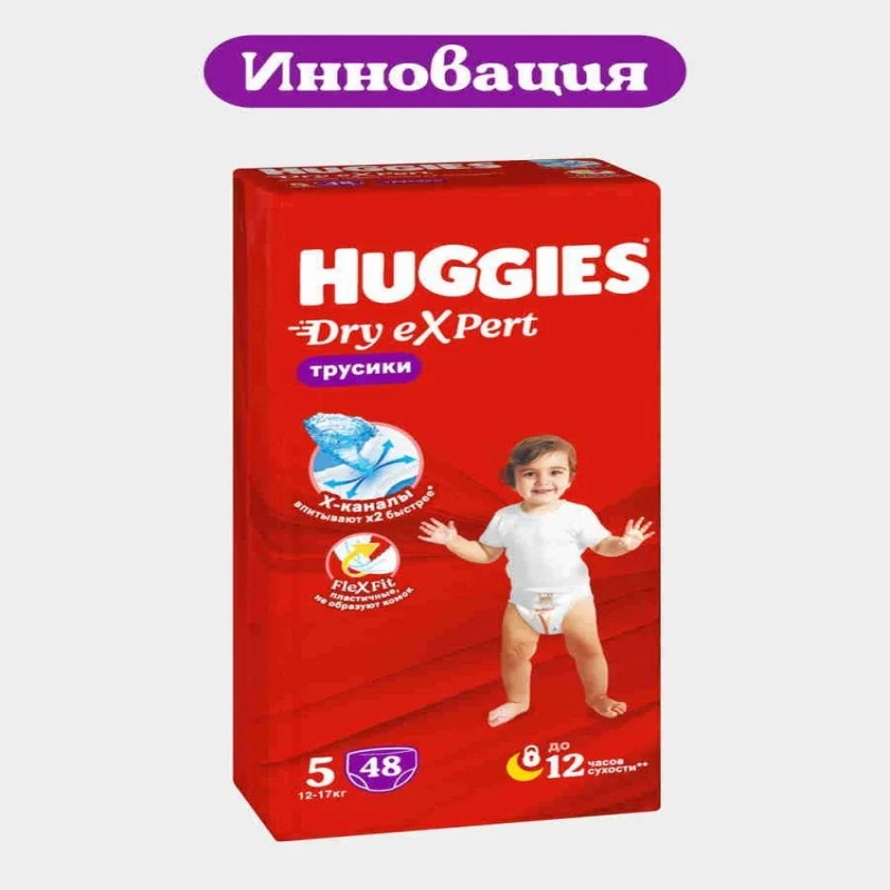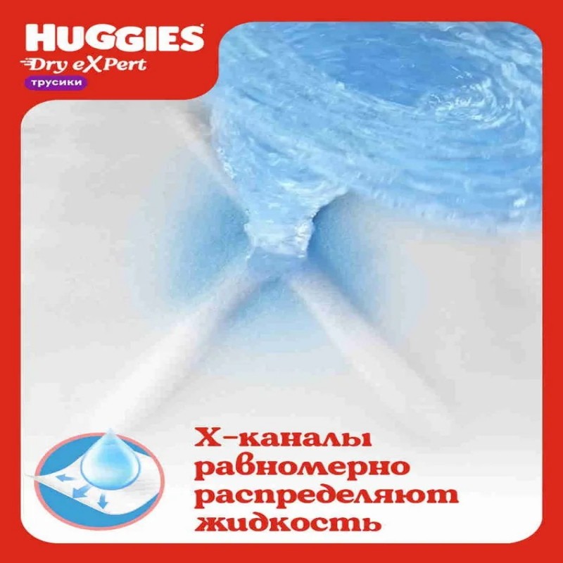 Инновационные трусики-подгузники Huggies Dry eXpert с Х-каналами – настоящие эксперты в сухости и комфорте. Подгузники трусы для детей размер 5 XL подойдут ребенку весом 12-17 кг. Уникальные Х-каналы, словно воронка, впитывают жидкость Х2 быстрее и равномерно распределяют ее. Технология FlexFit: трусики остаются удобными и пластичными даже в наполненном виде, и никакого комка между ножек. Технологичный суперабсорбент надежно удерживает влагу внутри надолго. Кожа малыша остается сухой до 12 часов. Эластичные барьерчики обеспечивают двойную защиту от протеканий. Мягкие материалы обеспечат маленьким экспертам дополнительный комфорт. Инновационные подгузники трусики Хаггис с Х-каналами не содержат отдушек, хлора и латекса. Яркий и веселый дизайн детских подгузников подойдет и мальчикам, и девочкам.