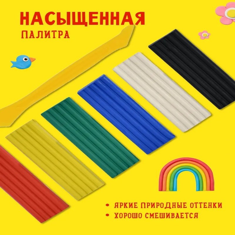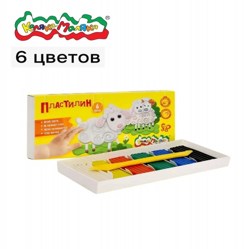 Пластилин детский для лепки набор 6 цветов Каляка-Маляка — это формула классического пластилина высокого качества. Маленькие любители творчества без труда смогут смять брусок и придать ему нужную форму. Пластилин для школы и детского сада имеет яркие сочные цвета, мягко растягивается и прекрасно держит форму. При этом не окрашивает руки, не прилипает и не оставляет масляных пятен. Классический набор пластилина поможет создавать настоящие шедевры - фигурки, пластилиновые картины. Пластилин классический изготавливается на современном российском производстве, соответствует всем стандартам безопасности детской продукции. Вес бруска составляет 15 грамм. Пластилин может применяться для творчества детей, начиная от 3 лет. Он отлично развивает мелкую моторику рук и творческое мышление у детей. Прекрасно подходит как для создания фигур, так и для рисования пластилином. Рекомендуется как для домашних поделок, так и для уроков труда в школе и занятий творчеством в детском саду. В набор также входит удобный пластиковый стек. Детская канцелярия и материалы для творчества Каляка-Маляка - это высокое качество и абсолютная безопасность для детей!