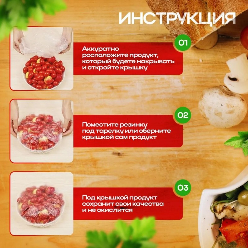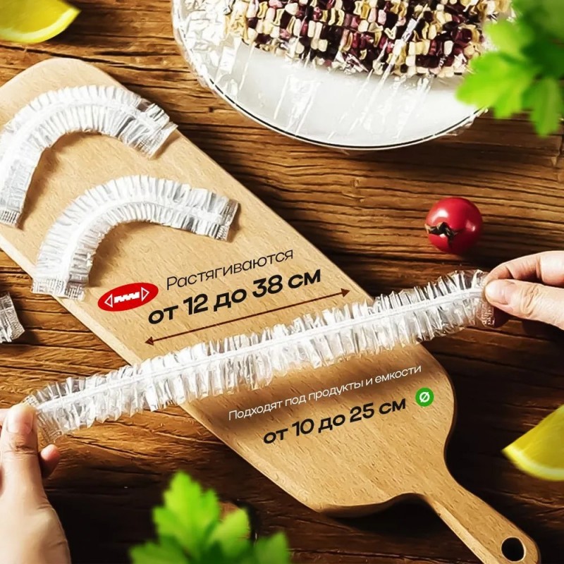Эластичный пакет для хранения продуктов - незаменимый помощник на кухне, природе, вечеринке и праздниках. Крышка пакеты на резинке защищают еду, пищу и продукты от заветривания, пыли, дождя и насекомых благодаря простой конструкции - прозрачному пакету и резинке на ее основании. В таком виде продукты долго остаются свежими.