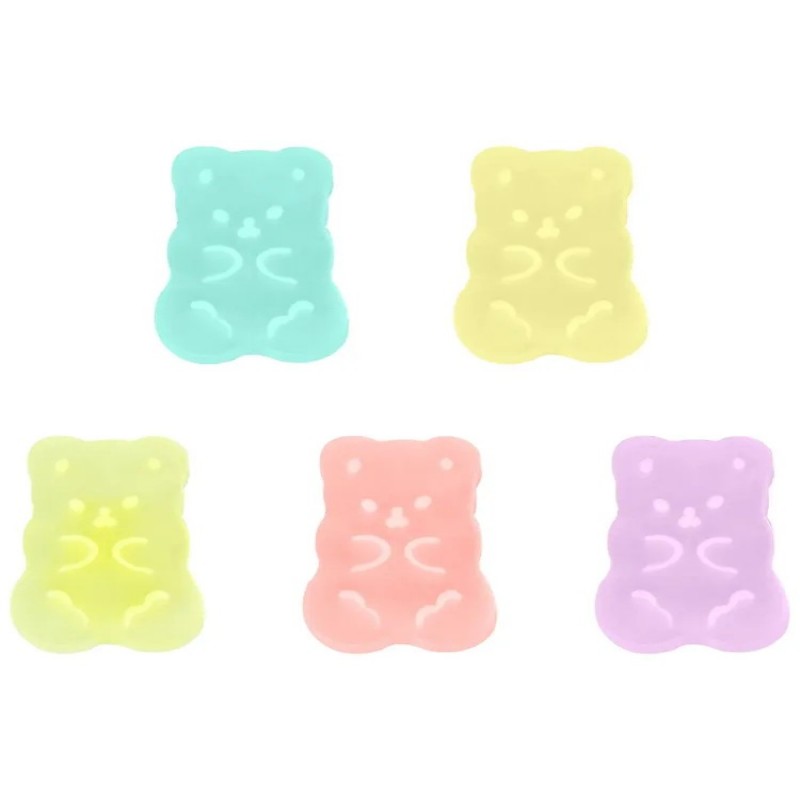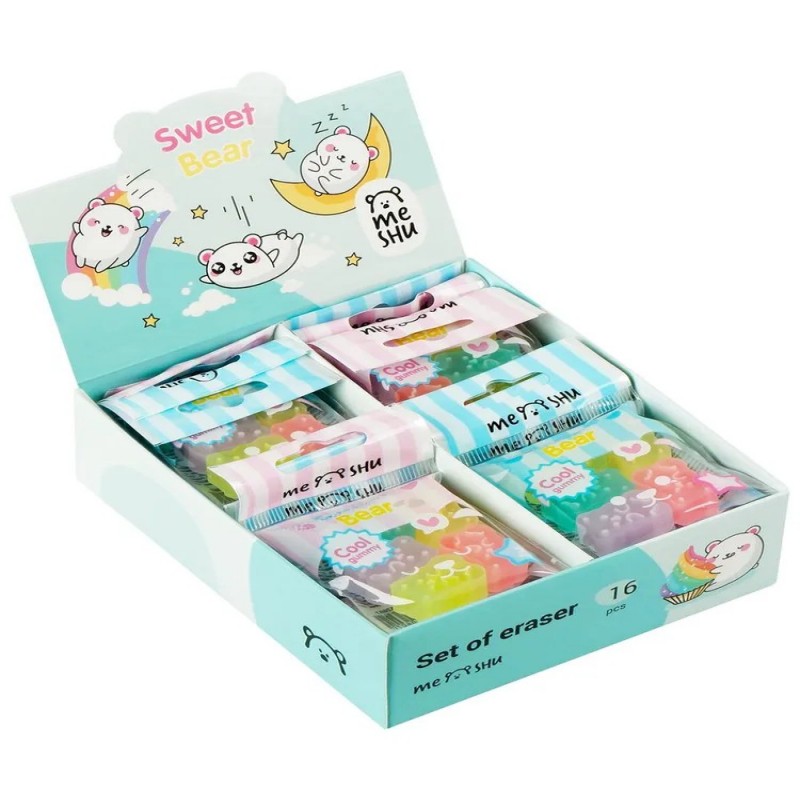 Ластики Candy Bear в виде мармеладных мишек — милые канцелярские помощники, которые поднимут настроение на учебе или работе. Набор состоит из пяти фигурных ластиков. Благодаря миниатюрному размеру они не занимают много места в пенале. Школьные ластики сделаны из ПВХ. Они легко справляются с линиями от чернографитного карандаша. Не оставляют следов и грязных разводов, не повреждают бумагу. Стерки упакованы в пакет, который напоминает упаковку от сладостей. Набор школьных ластиков от бренда MESHU станет необычным подарком.