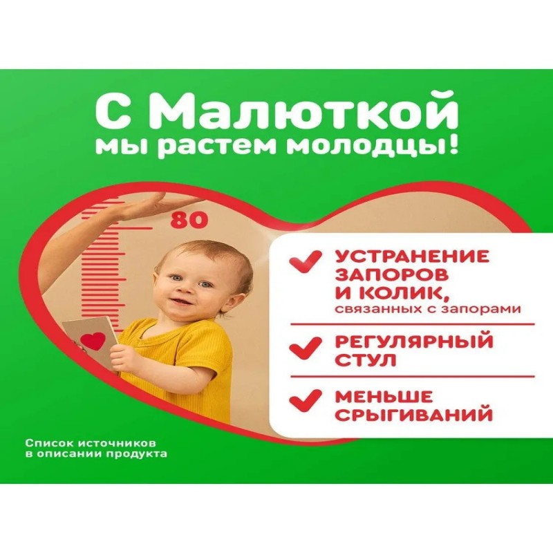 деминерализованная молочная сыворотка, смесь растительных масел (пальмовое, рапсовое, кокосовое, высокоолеиновое подсолнечное, подсолнечное), обезжиренное молоко, мальтодекстрин, лактоза, галактоолигосахариды, загуститель – камедь рожкового дерева, концентрированная молочная сыворотка, концентрат белков молочной сыворотки, фруктоолигосахариды, кальция карбонат, кальция фосфат, калия хлорид, калия цитрат, рыбий жир, магния хлорид, эмульгатор – соевый лецитин, холина хлорид, натрия гидроксид, масло из Mortierella alpina, натрия цитрат, L-аскорбиновая кислота, таурин, L-аскорбат натрия, железа сульфат, цинка сульфат, инозитол, уридин-5-монофосфат натриевая соль, цитидин-5-монофосфат, L-триптофан, аденозин-5-монофосфат, инозин-5-монофосфат натриевая соль, никотинамид, гуанозин-5-монофосфат натриевая соль, D-пантотенат кальция, DL-альфа-токоферола ацетат, фолиевая кислота, меди сульфат, ретинола пальмитат, DL-альфа-токоферол, D-биотин, тиамина гидрохлорид, L-карнитин, пиридоксина гидрохлорид, рибофлавин, холекальциферол, йодид калия, марганца сульфат, фитоменадион, селенит натрия, цианокобаламин.