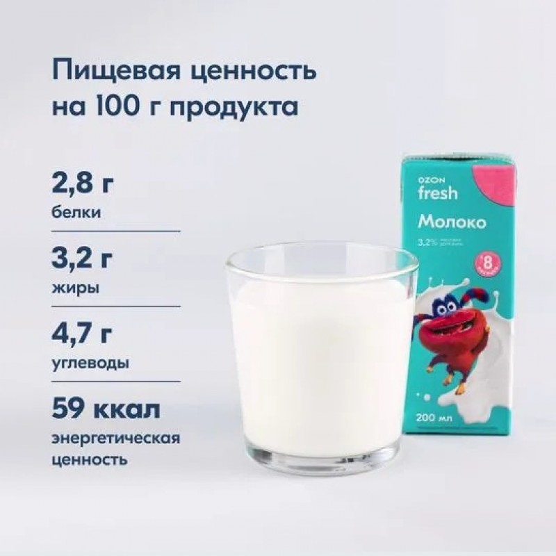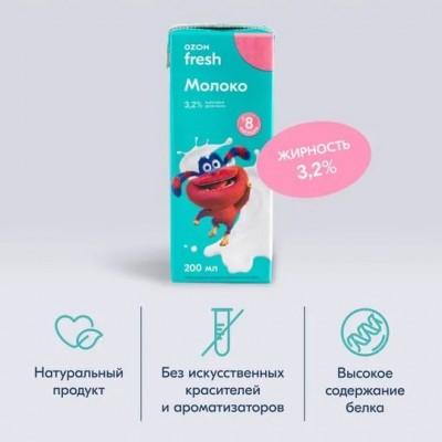 Детское молоко Ozon fresh станет лучшим помощником для развития и укрепления растущего организма. При производстве нашего молока используется совершенный метод тепловой обработки – ультрапастеризация, при котором погибают все патогены и бактериальные споры, но сохраняется полезный природный состав напитка. Благодаря такой обработке и розливу в асептических условиях появляется возможность хранить продукт длительное время. Детское молоко и молочные коктейли Ozon fresh производятся на крупнейшем молочном производстве России в Пензенской области. Рекомендован для употребления с 8-ми месяцев.