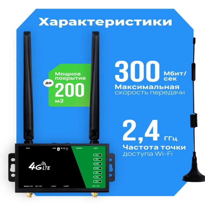 Роутер WiFi с сим картой 4G LTE с 2 выносными антеннами 210B