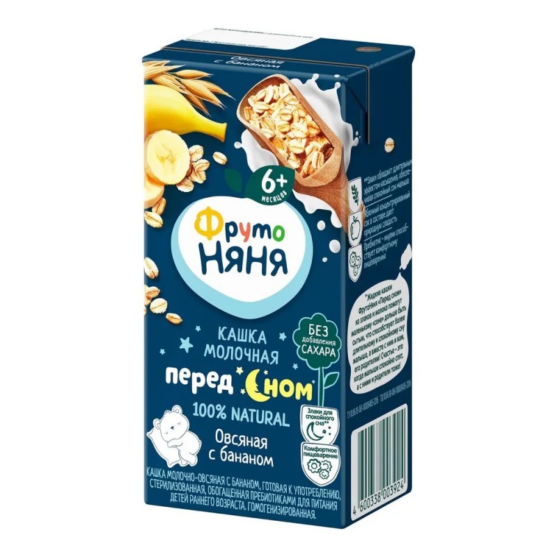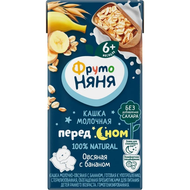 Молоко сухое цельное, мука овсяная, пюре из бананов,фруктоза, мальтодекстрин, пребиотик - инулин, вода.