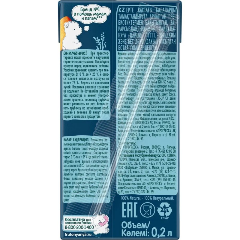 Молоко сухое цельное, пюре персиковое концентрированное, фруктоза, мальтодекстрин, мука рисовая, мука кукурузная, мука пшеничная, мука гречневая, мука овсяная, пребиотик - инулин, натуральный ароматизатор "Персик", вода.