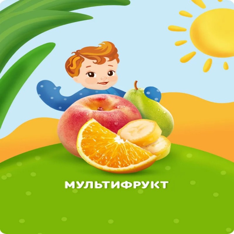 Яблочное пюре, грушевое пюре, персиковое пюре, концентрированный яблочный сок, банановое пюре, концентрированный апельсиновый сок, концентрированный лимонный сок