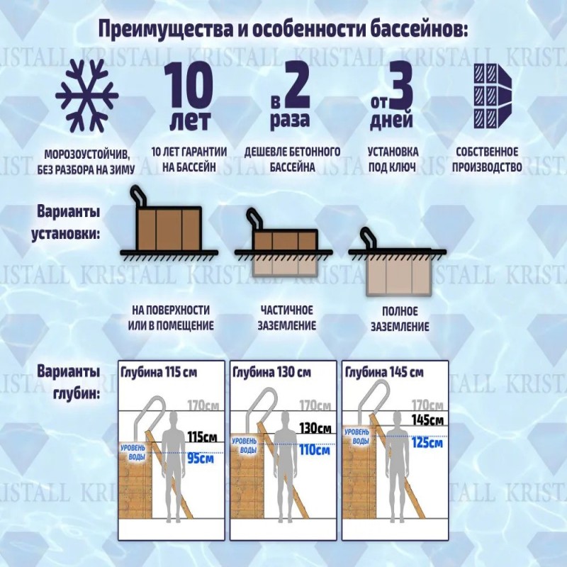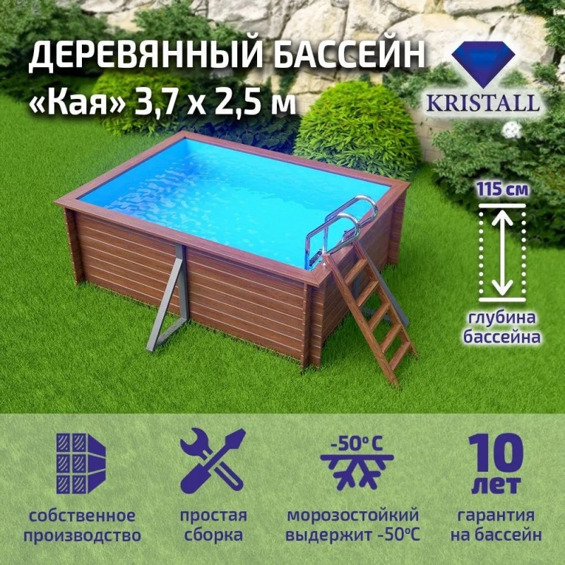 Деревянный морозоустойчивый бассейн Кристалл, "Кая" каркасный прямоуго