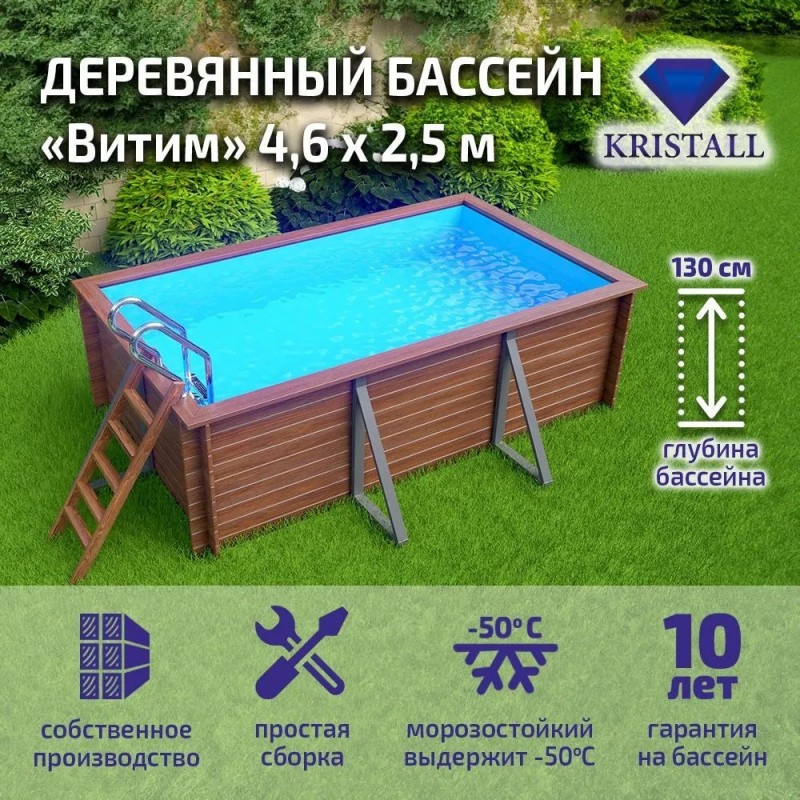 Деревянный морозоустойчивый бассейн Кристалл, "Витим" каркасный прямоу