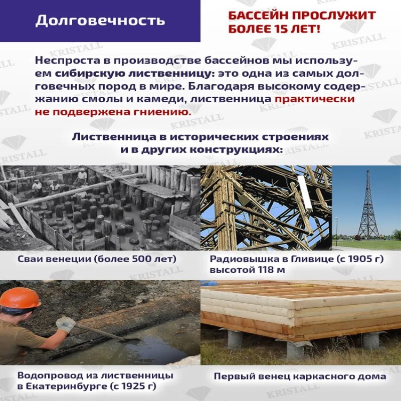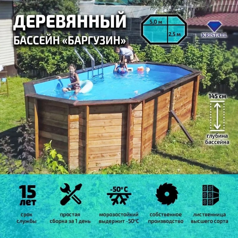 Деревянный морозоустойчивый бассейн Кристалл, "Баргузин" каркасный ова