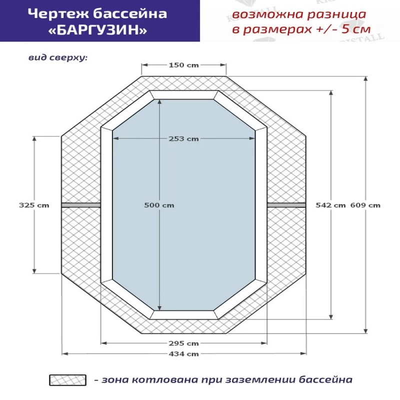 Комплектация Деревянный каркас Чашковый ПВХ пакет Лестница металлическая Скиммер Форсунка Металлические распорки *система фильтрации, подогрев воды и другое оборудование подбирается отдельно