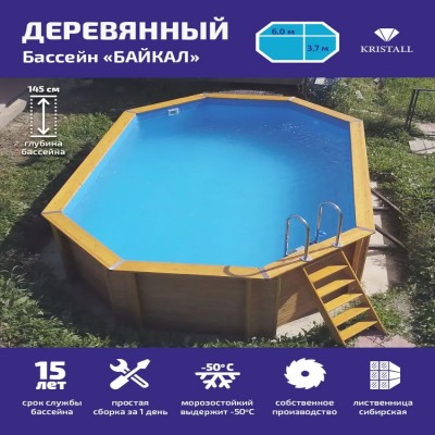 Деревянный морозоустойчивый бассейн Кристалл, "Байкал" каркасный оваль