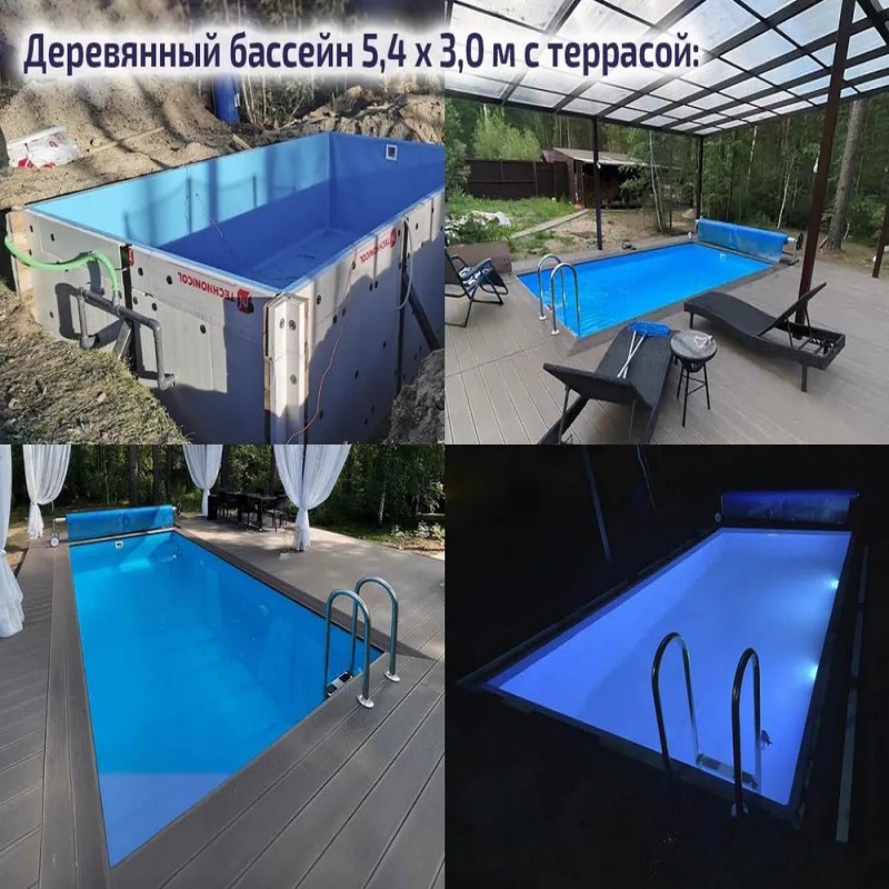 Комплектация Комплектация: Деревянный каркас Чашковый ПВХ пакет Лестница металлическая Скиммер Форсунка Металлические распорки *система фильтрации, подогрев воды и другое оборудование подбирается отдельно