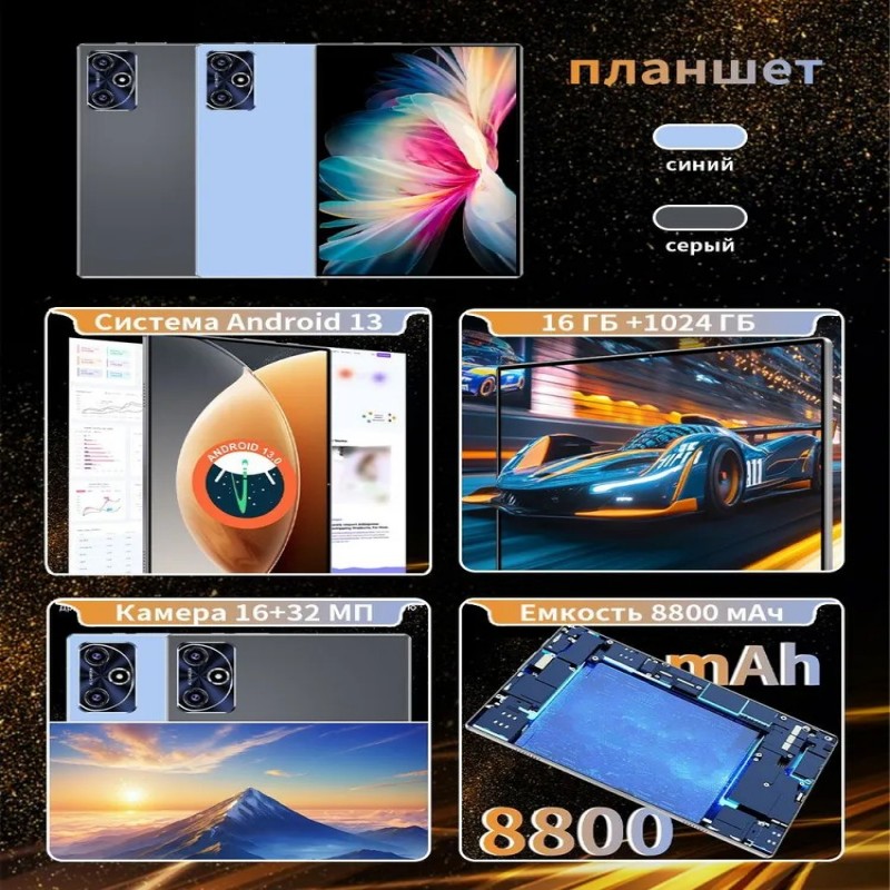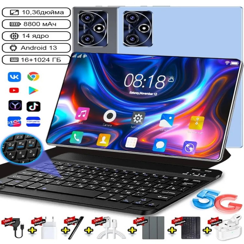 Планшет Планшетный компьютер, Android 13, 10,36", 16 ГБ+1024 ГБ, 8800