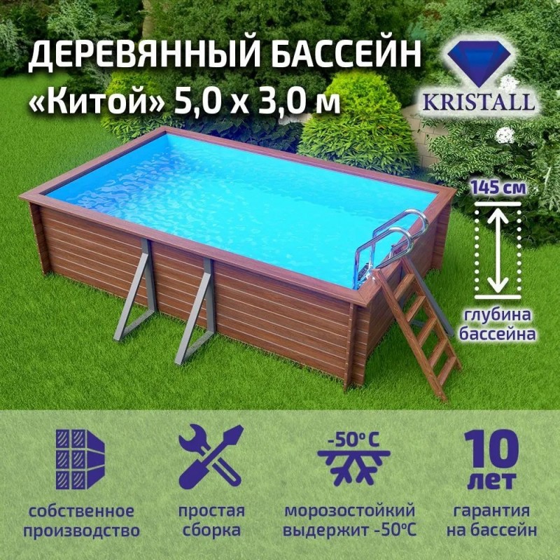 Деревянный каркасный бассейн Кристалл, "Китой" морозоустойчивый прямоу
