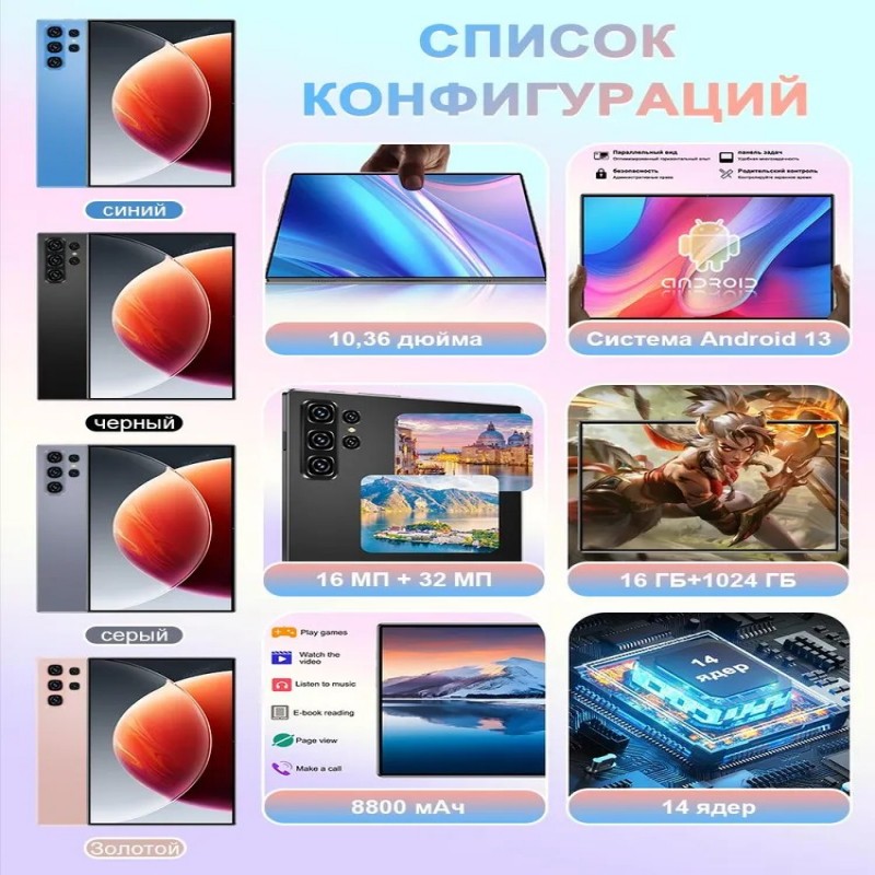 Планшет Планшет, Планшет андроид, Игровой планшет, Android 13, 10.36",
