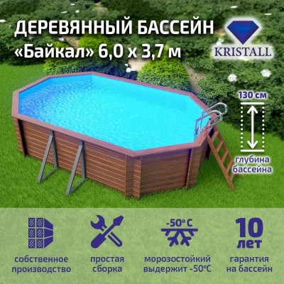 Деревянный бассейн Кристалл, "Байкал" морозоустойчивый каркасный оваль