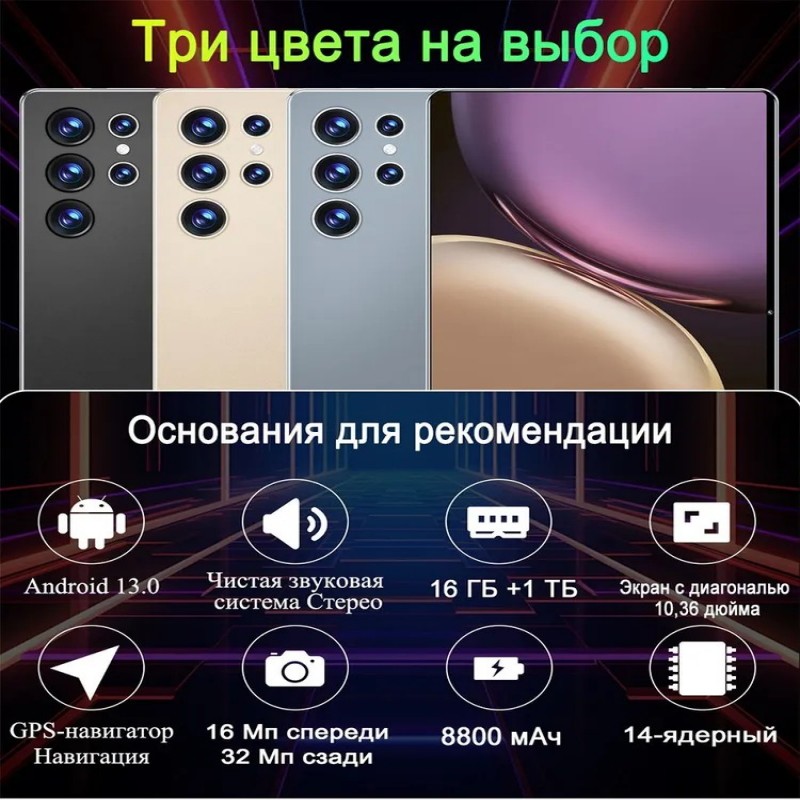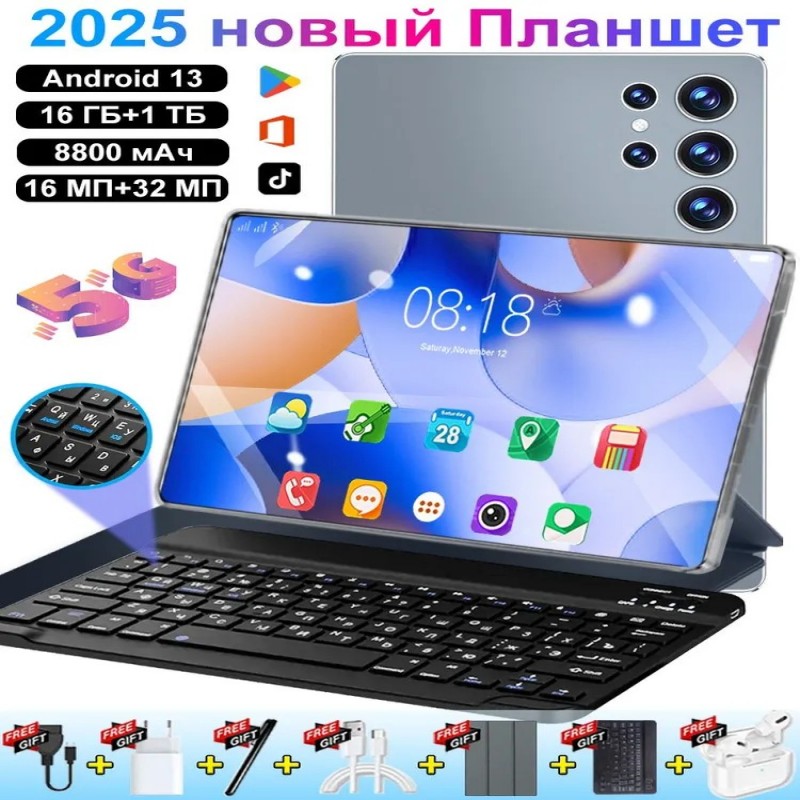Планшет Планшет 2025 Новый 5G Android 13, 10.36" 16 ГБ +1 ТБ 8800mAh 1