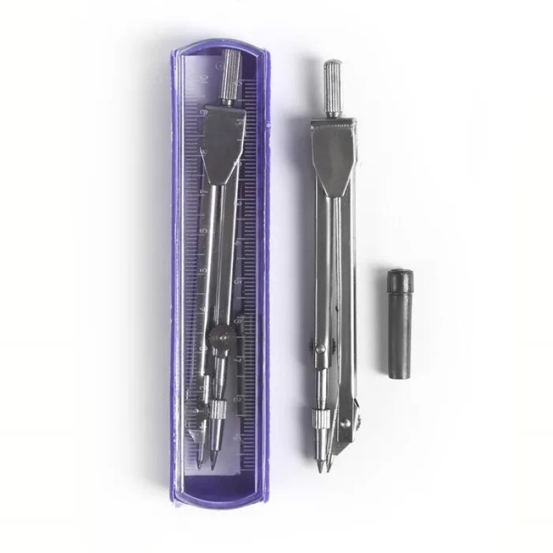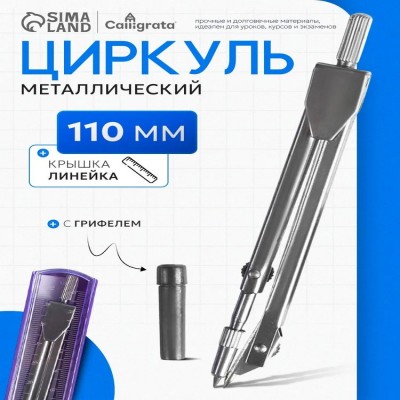 Циркуль школьный металлический, 110 мм, в пластиковом пенале - линейка