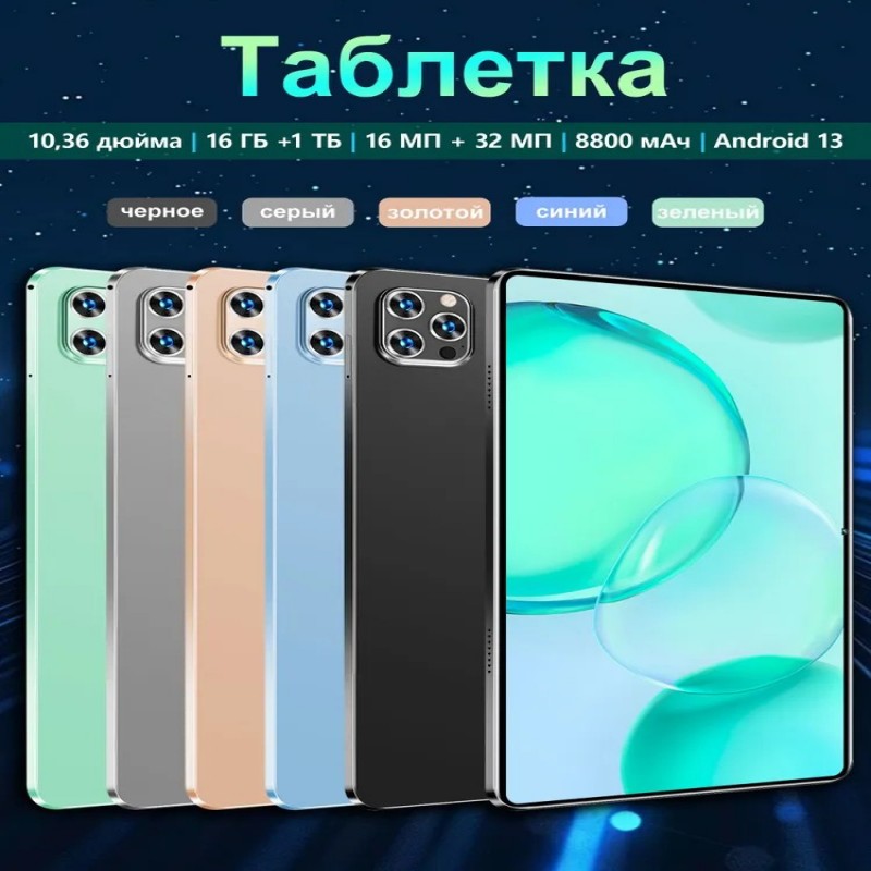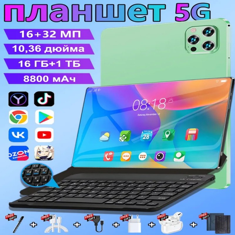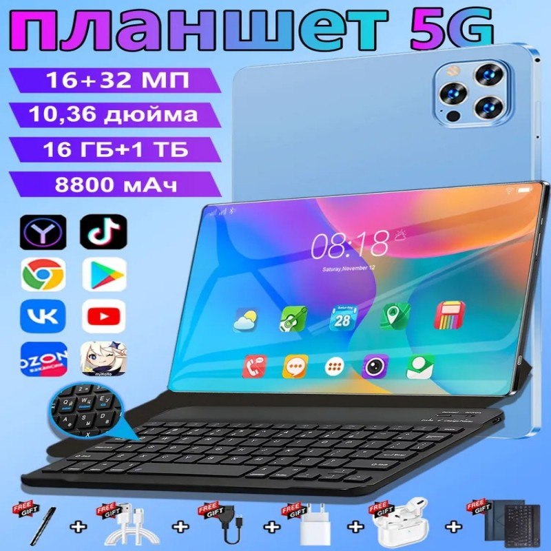 Планшет Планшет 2025 5G, новый дизайн, 10,36 дюйма, 8800 мАч, 16 ГБ +