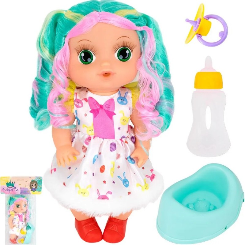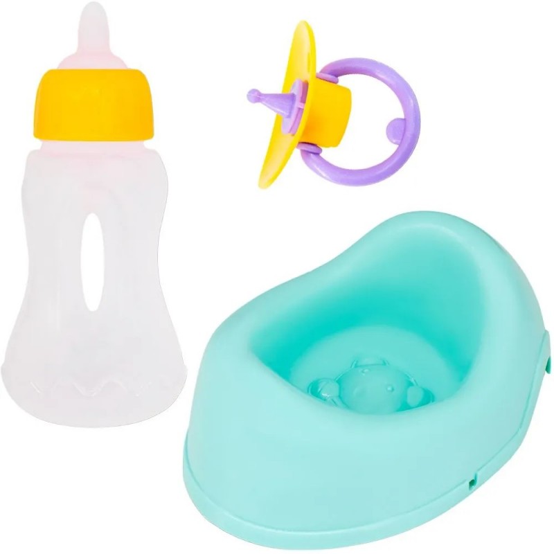 Комплектация: пупс (29,5 см) – 1 шт., соска-пустышка – 1 шт., бутылочка (12 х 5,5 х 4,5 см) – 1 шт., горшок – 1 шт.