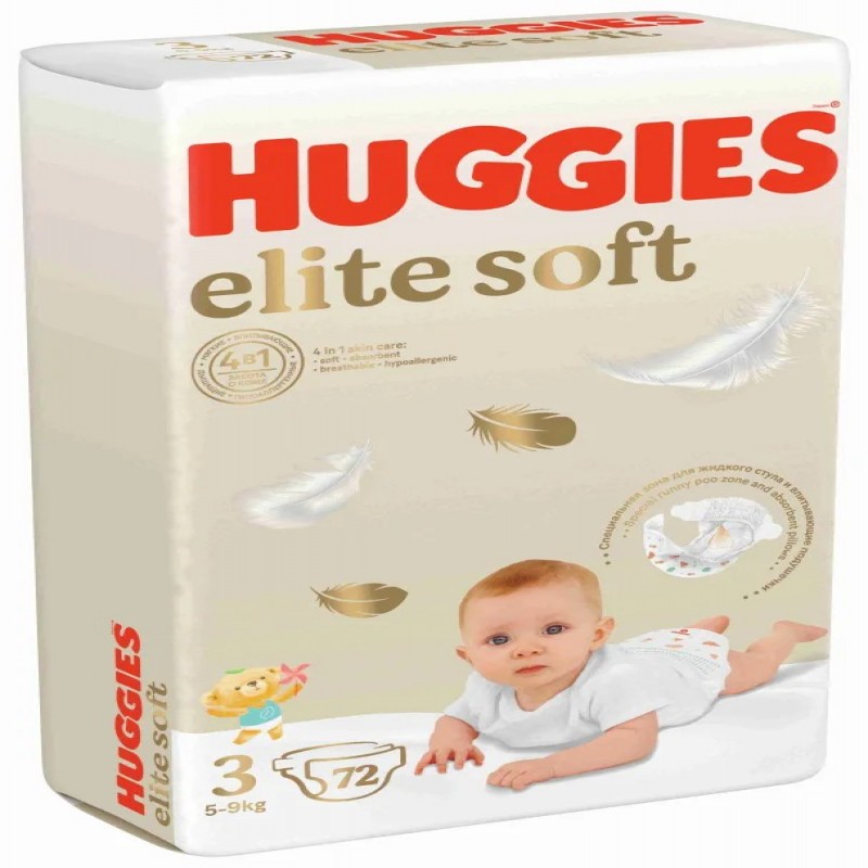 Подгузники Huggies Elite Soft 3 M размер детские, 5-9 кг, 72 шт