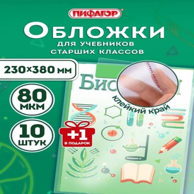 Обложки ПИФАГОР – это надежное решение для защиты учебников старших классов. Изготовленные из прозрачного полипропилена толщиной 80 мкм, они обеспечивают долговечность и сохранение великолепного внешнего вида книг. Набор включает 10 обложек формата А4 и одну дополнительную в подарок. Универсальность этих обложек для учебников достигается благодаря клеевому краю, позволяющему регулировать размер под разные учебники. ПИФАГОР предлагает канцелярские принадлежности высокого качества, которые не содержат вредных веществ для здоровья детей, делая их идеальными для школы. Эти обложки для тетрадей и книг станут неотъемлемой частью вашей школьной канцелярии, обеспечивая постоянную защиту и аккуратный вид учебников.