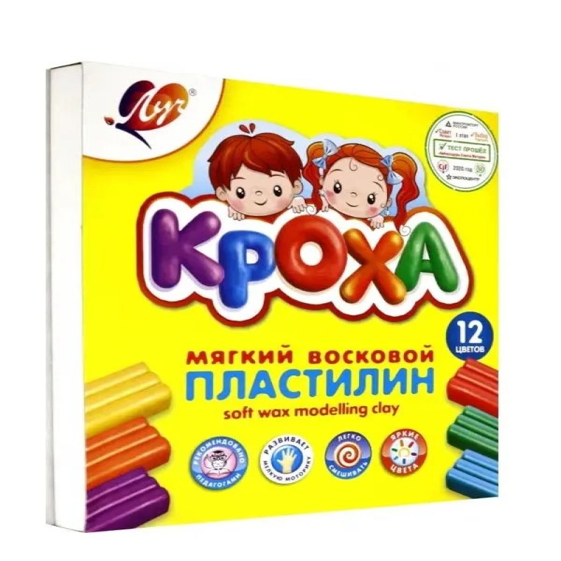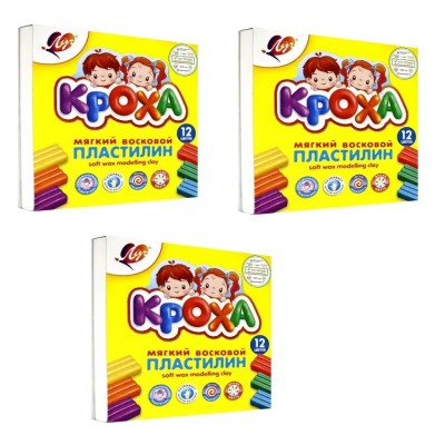 Луч Пластилин восковой Кроха + стек, 12 цветов, 198 гр, 3 уп