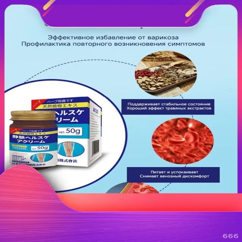 СоставКитайская травяная медицинаКомплектацияЯпония Крем от варикоза 50г N401 C432 T339 A775
