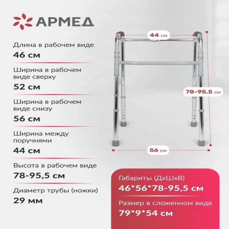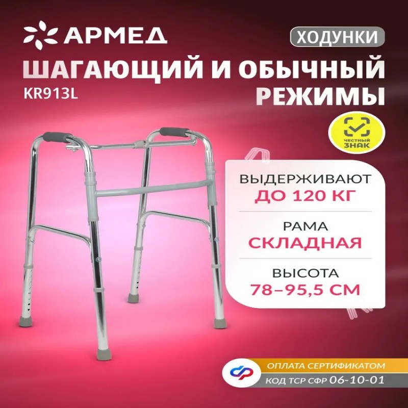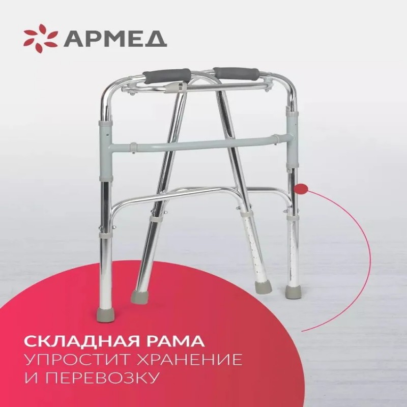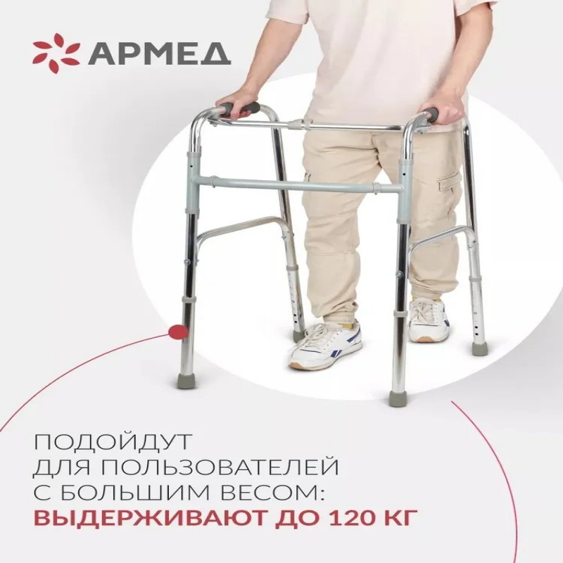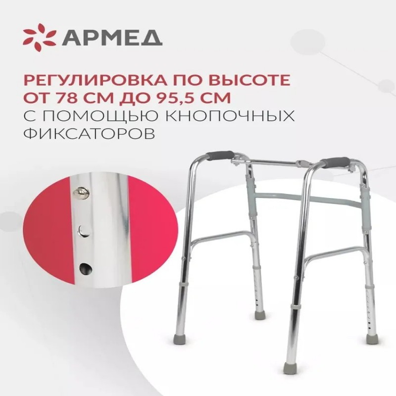 Ходунки инвалидные Армед KR913L – надежная и удобная модель из легкого и прочного металлического сплава. Ходунки могут использоваться в двух положениях, а высоту удобно подстраивать под рост пользователя.