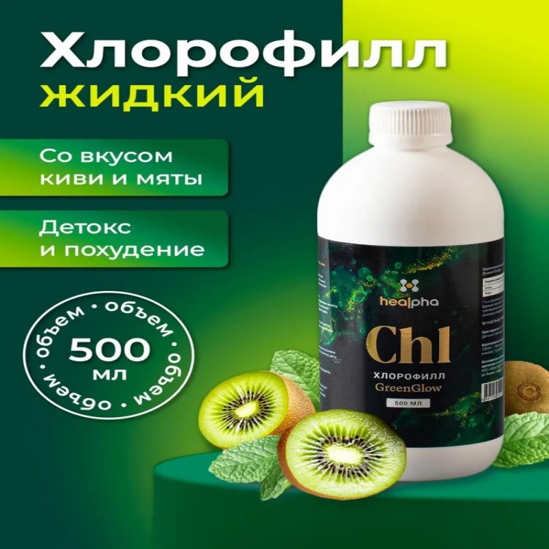 Хлорофилл жидкий HEALPHA, хлорофилл со вкусом киви, 500 мл