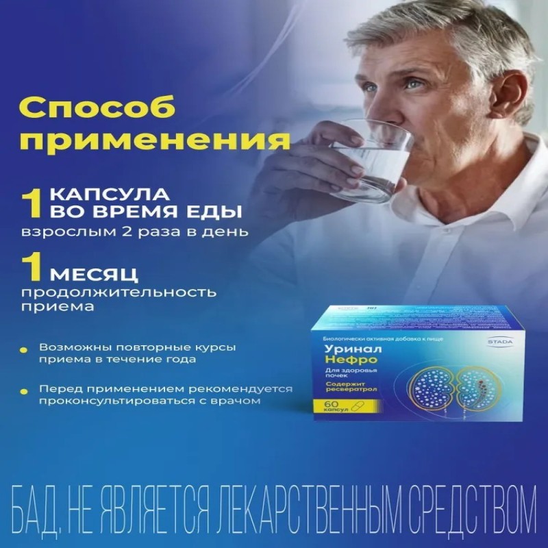 Состав Экстракт корней марены красильной, оболочка капсулы (желатин, вода, краситель оксид железа желтый), экстракт листьев ортосифона тычиночного, экстракт листьев эпимедиума, экстракт корня родиолы розовой, экстракт корня солодки голой, наполнитель лактоза, ресвератрол, экстракт листьев гинкго билоба. Способ применения Взрослым по 1 капсуле 2 раза в день во время еды. Продолжительность приема — 1 месяц. Возможны повторные курсы приема в течение года. Перед применением рекомендуется проконсультироваться с врачом. Показания В качестве биологически активной добавки к пище ̶ источника флавоноидов, ресвератрола, глицирризиновой кислоты, антрахинонов, содержащей салидрозиды.