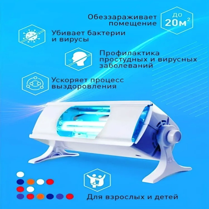 это надежный и эффективный способ профилактики и лечения простудных заболеваний и обеззараживания воздуха до 20м2, что подтверждено протоколом испытаний. Лампа бактерицидная обладает мощным дезинфицирующим действием, подходит для взрослых и детей старше 3 лет.