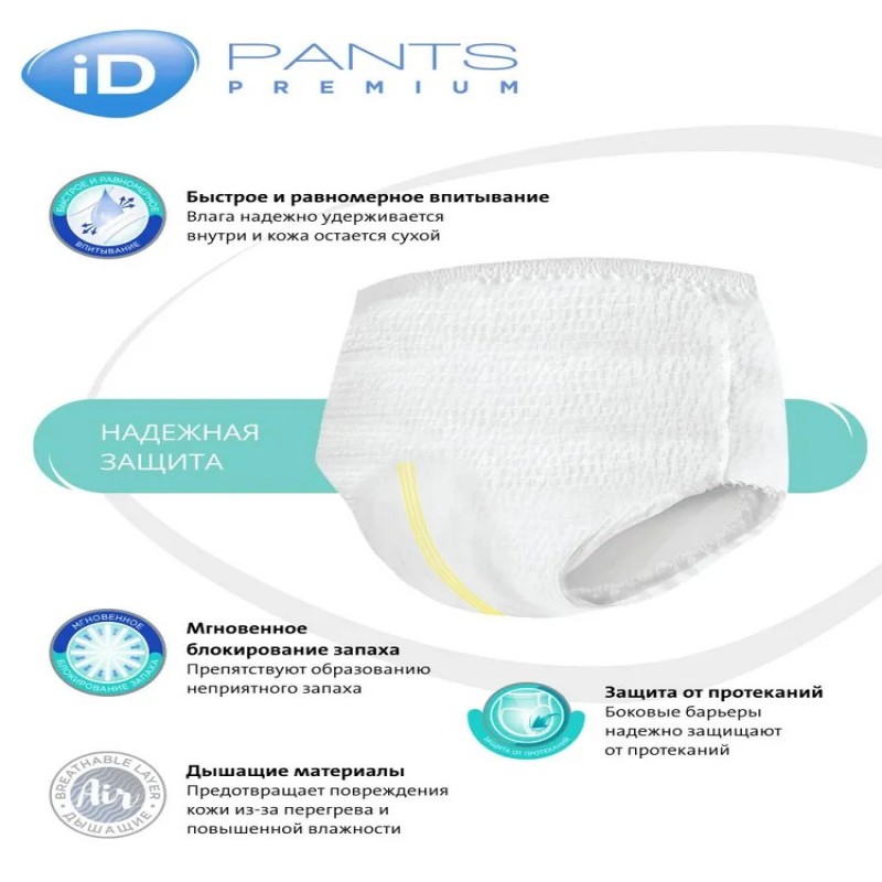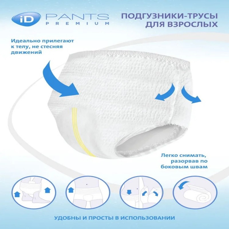 Трусы подгузники впитывающие для взрослых iD PANTS PREMIUM, размер L,