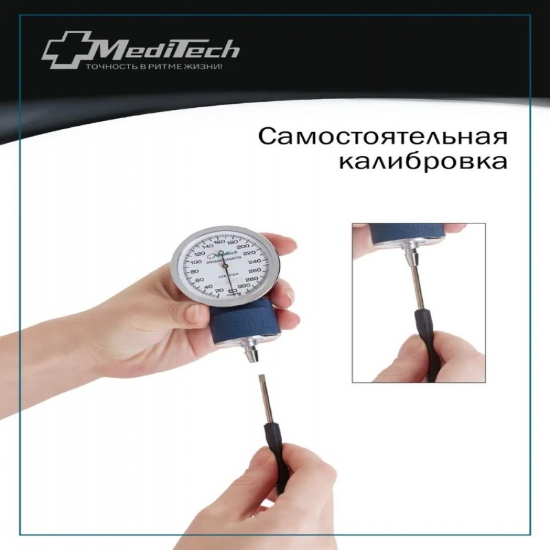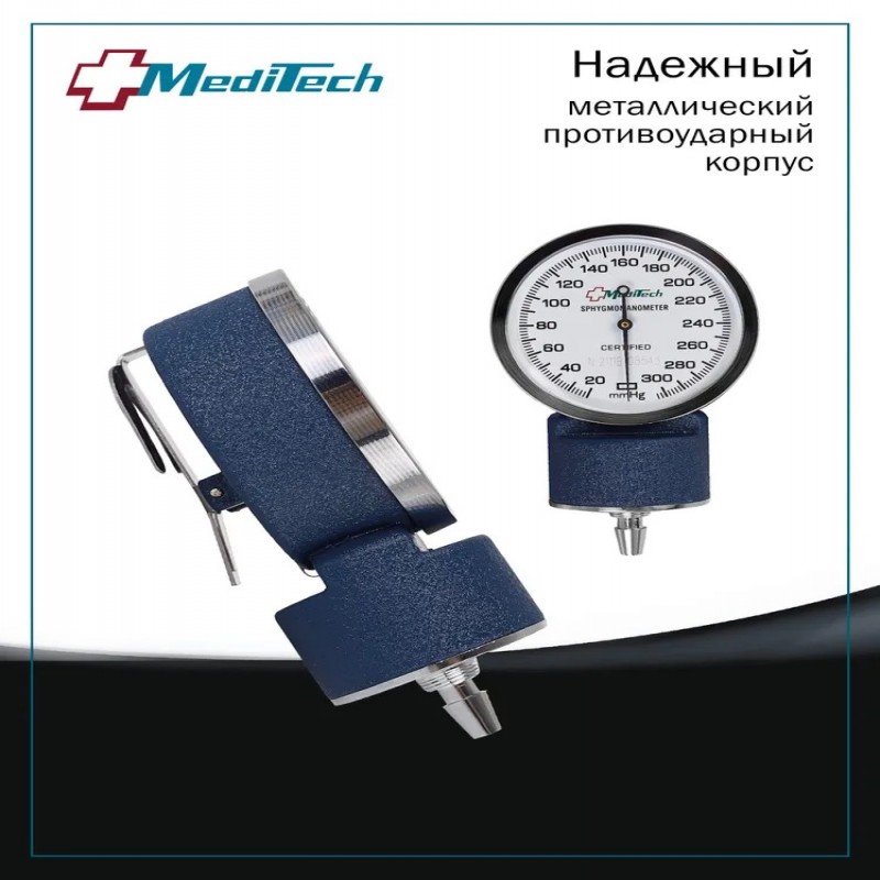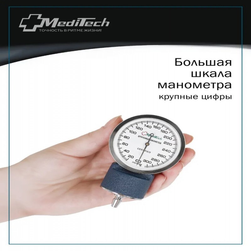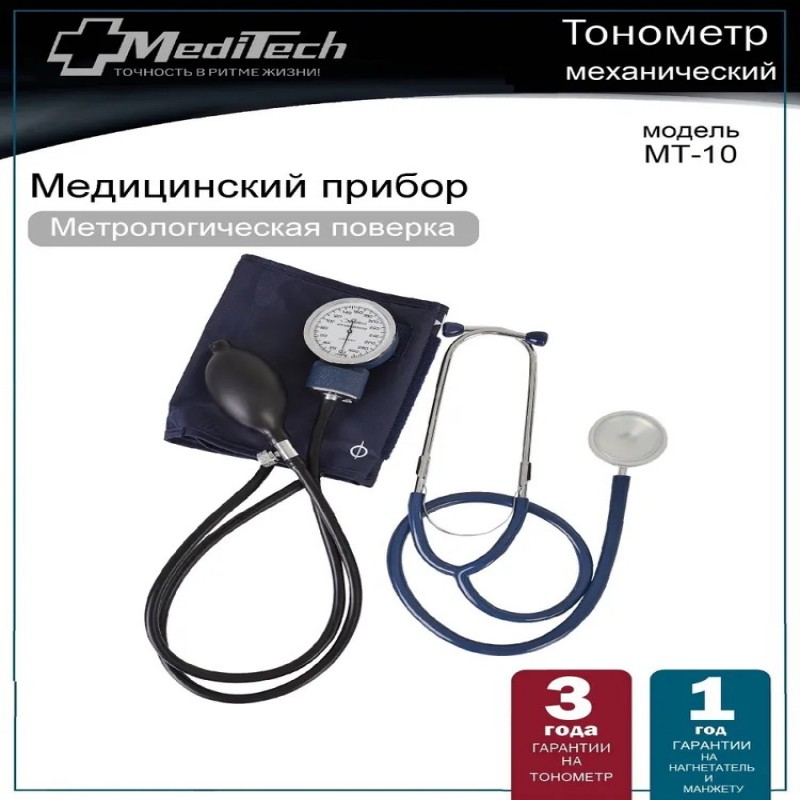 Механический тонометр МТ-10 с отдельным стетоскопом. Предназначен для измерения артериального давления по методу Короткова. Манжета 25,4-40,6 см идет С кольцом для удобства фиксации. Совместим с пятью видами манжет разной величины (для новорожденных 9,5-13,5 см; детская 13,0-19,0 см; подростковая 18,4-26,8 см; большая взрослая 34,3-50,8 см; набедренная 40,6-66 см), которые приобретаются отдельно. В комплекте с прибором идет отвертка для калибровки манометра без обращения в сервисный центр и сумочка для хранения. Манометр имеет металлический противоударный корпус. Дисплей большой с легко читаемыми цифрами.