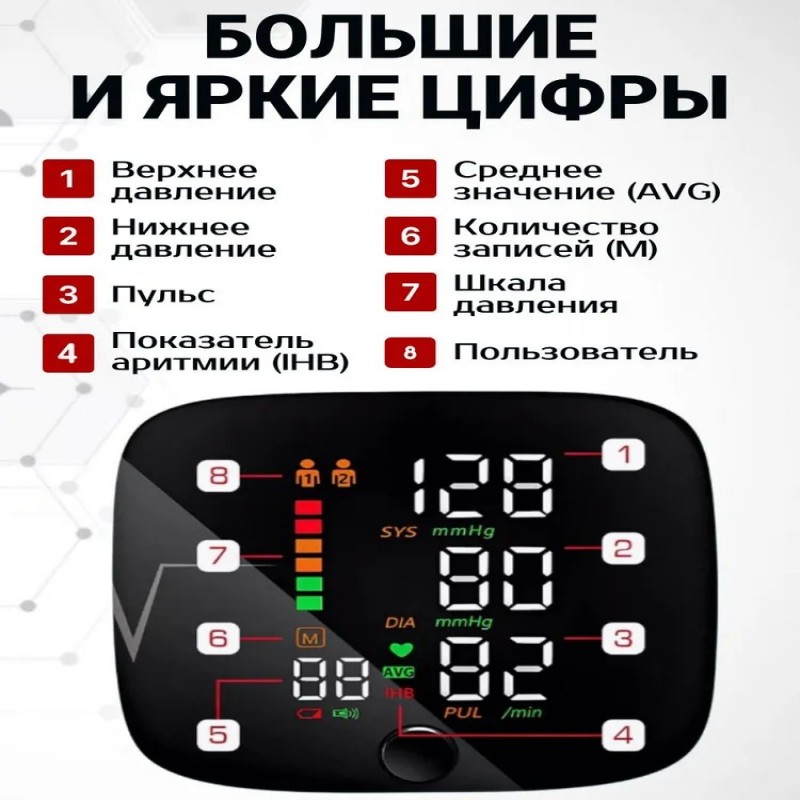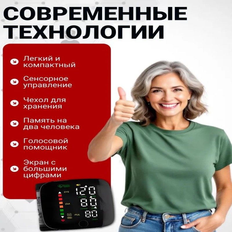 Тонометр автоматический; Тонометр на запястье; Русская голосовая озвуч
