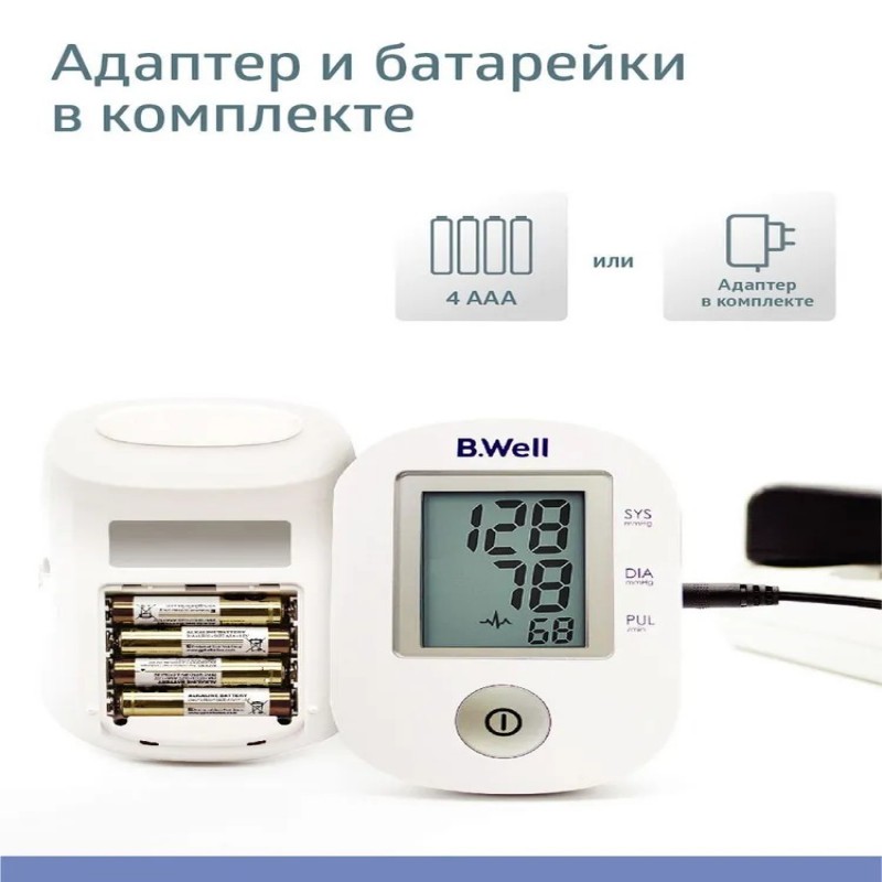 Для точного, быстрого и комфортного измерения артериального давления. Разработан специалистами бренда B.Well — швейцарского производителя медицинских изделий. Тонометр обеспечивает надежное измерение систолического и диастолического артериального давления, а также частоту сердечных сокращений.