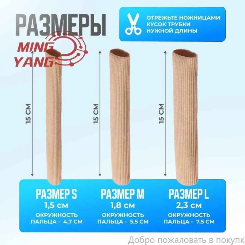 Трубка напальчник отлично защищает от натираний и мозолей на ногах. Длинна тканевой трубки 15 см, ее хватит на несколько применений, так как обычно для использования хватает отреза не более 3 см. Силиконовые трубки выполены из гипоаллергенных материалов, обеспечивают пропускание воздуха, что исключает запотевание и натертости пальцев ног.