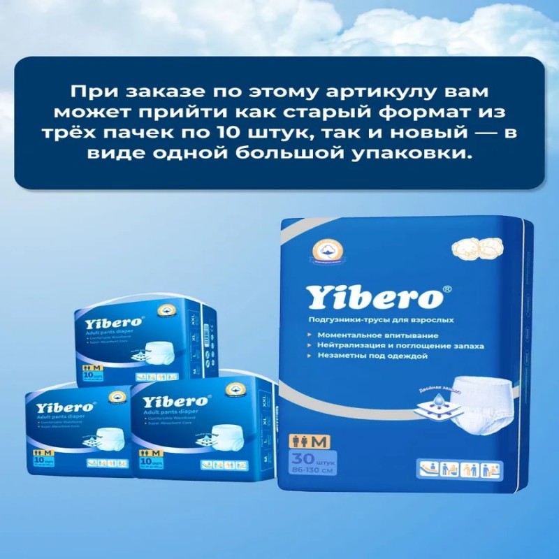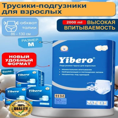 Трусики можно одевать и снимать несколько раз, в случае сохранения его сухим. Мягкий материал ночных и дневных памперсов для взрослых Yibero делает их поверхность приятной на ощупь, не создает неприятных ощущений во время использования, а удобные гидрофобные внутренние боковые бортики дополнительно защищают от протекания.