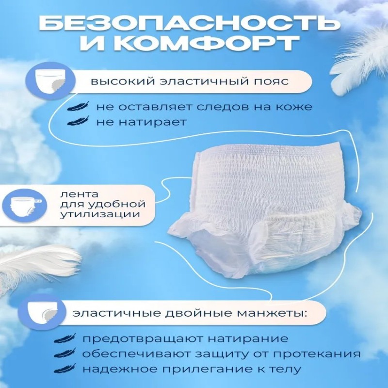 Памперсы для взрослого обеспечивают моментальное впитывание, удержание влаги и блокировку неприятных запахов.