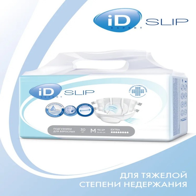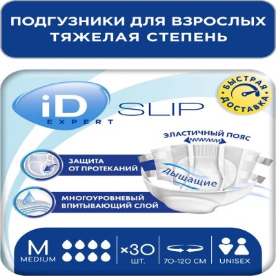 Подгузники для взрослых iD SLIP EXPERT, размер M, 30 шт. для тяжелой с
