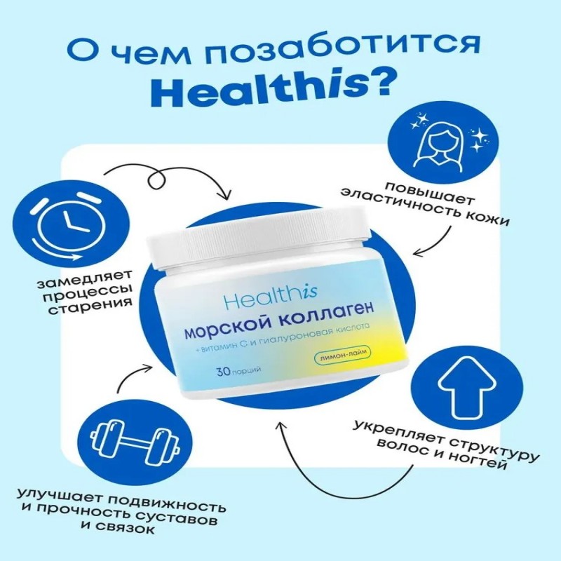Морской коллаген необходим для поддержки здоровья костей, суставов и связок. Его регулярный прием помогает улучшить их подвижность и плотность, а также снизить боли в суставах. Более того, коллаген Healthis обогащен витамином С и гиалуроновой кислотой для улучшения его усвояемости.
