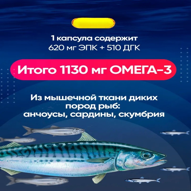 Омега-3 1000мг замедляется старение организма, очищает сосуды, нормализует работу щитовидной железы, сердца.