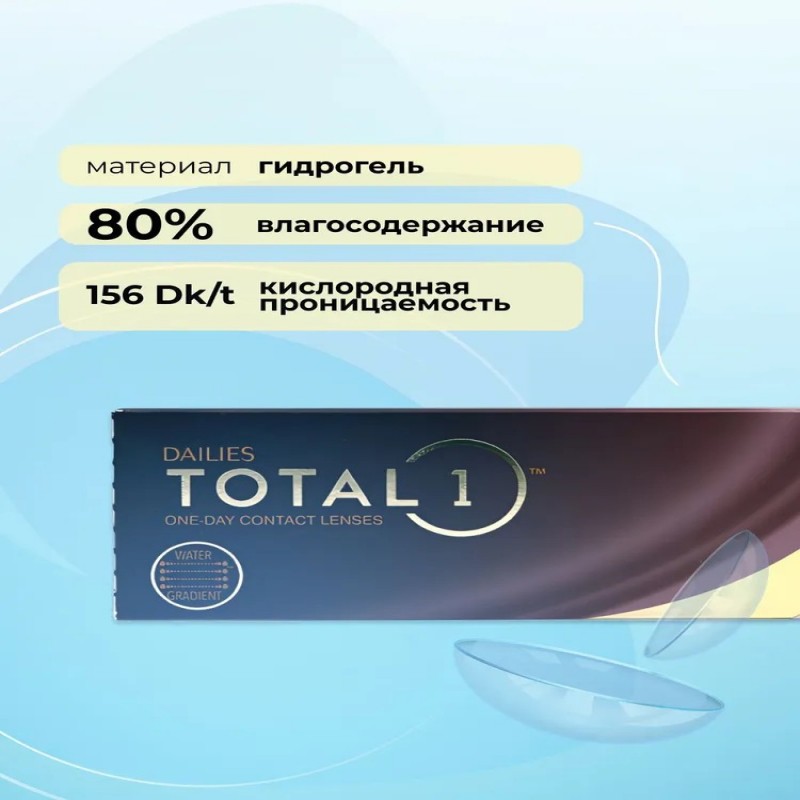 Однодневные контактные линзы Dailies Total 1, 30 шт. R: 8.5, D: -3.50