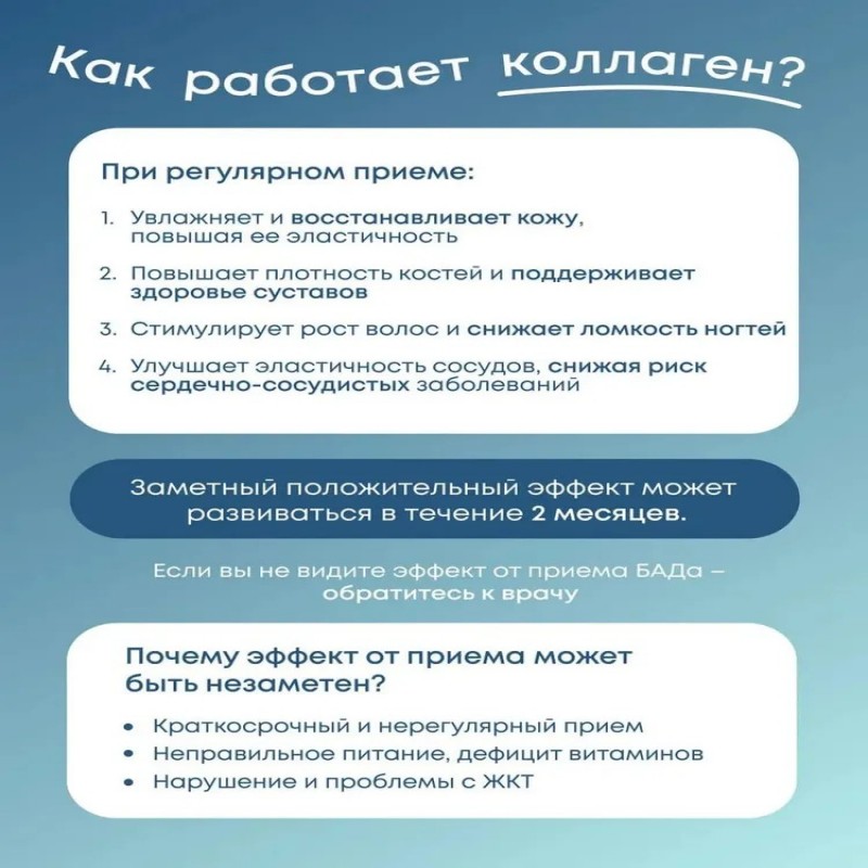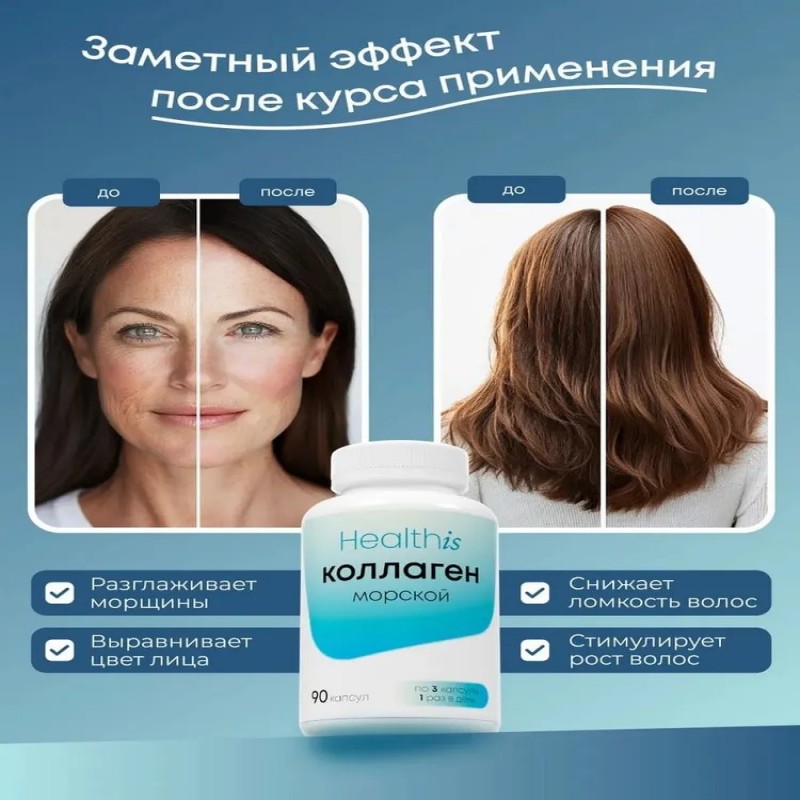 Дозировка [object Object],[object Object],[object Object] Состав коллаген гидролизованный морской, витамин С, гиалуроновая кислота, тальк пищевой, капсула (желатин пищевой). Способ применения Принимать по 3 капсулы в день во время еды. Показания для укрепления волос, ногтей, улучшения качества волос, прочности костей и эластичность связок